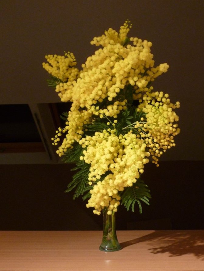 En me documentant avant de vous rédiger cette bafouille, j’ai découvert (ou plutôt confirmé) que le bel arbre n’est absolument pas fait pour vivre dans ma région de l’Est. Il aime la chaleur et surtout la lumière, beaucoup de lumière. Il craint le gel et les sols argileux. Il peut pousser jusqu’à 10 mètres de haut et la variété la plus fréquente, le mimosa des fleuristes, fait des rejets qui le classent comme envahissant. Bref, dans mon jardin il n’aurait aucune chance. Las ! Je me contenterai d’un bouquet en février.