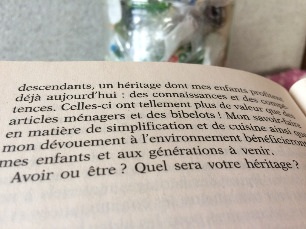 Enfin, la dernière « force » que nous donne notre mode de vie dans la situation actuelle concerne le mental. Dans la mesure où nous préférons « être » à « avoir », pour reprendre les mots de Béa Johnson, papesse du zéro déchet, nous ne ressentons pas vraiment de frustration à l’idée de ne pas pouvoir nous livrer au « shopping-loisir ». La fermeture des magasins autres que ceux de première nécessité nous affecte assez peu. J’espère en disant cela que la machine à laver ou le PC ne vont pas nous lâcher, ou que nous n’aurons pas besoin de réparer urgemment quelque chose dans la maison, bien sûr. En tout cas, je me passe de nouveaux vêtements, objets de déco, jeux ou livres, sans me sentir lésée. Il y a même des moments où je me sens carrément soulagée : pas de tentation de faire entrer de nouveaux objets dans ma maison !