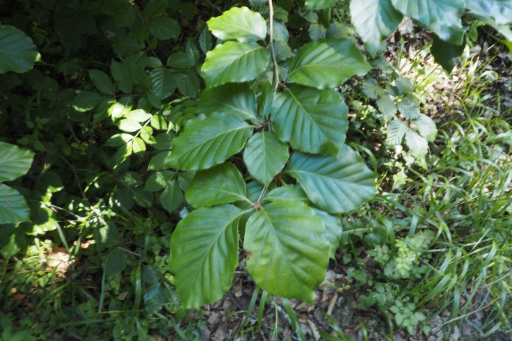 L’arbre n°3 est un hêtre. Pour ne pas confondre ses feuilles avec celles du charme, on peut s’aider de la phrase « Le charme d’Adam, c’est d’être à poil » qui permet de retenir que les feuilles du charme sont dentées (charme / à dents) tandis que celles du hêtre ne le sont pas, mais possèdent (pour les jeunes feuilles) une multitude de petits cils, ou poils (hêtre / poils). Voilà pour l’explication 😉