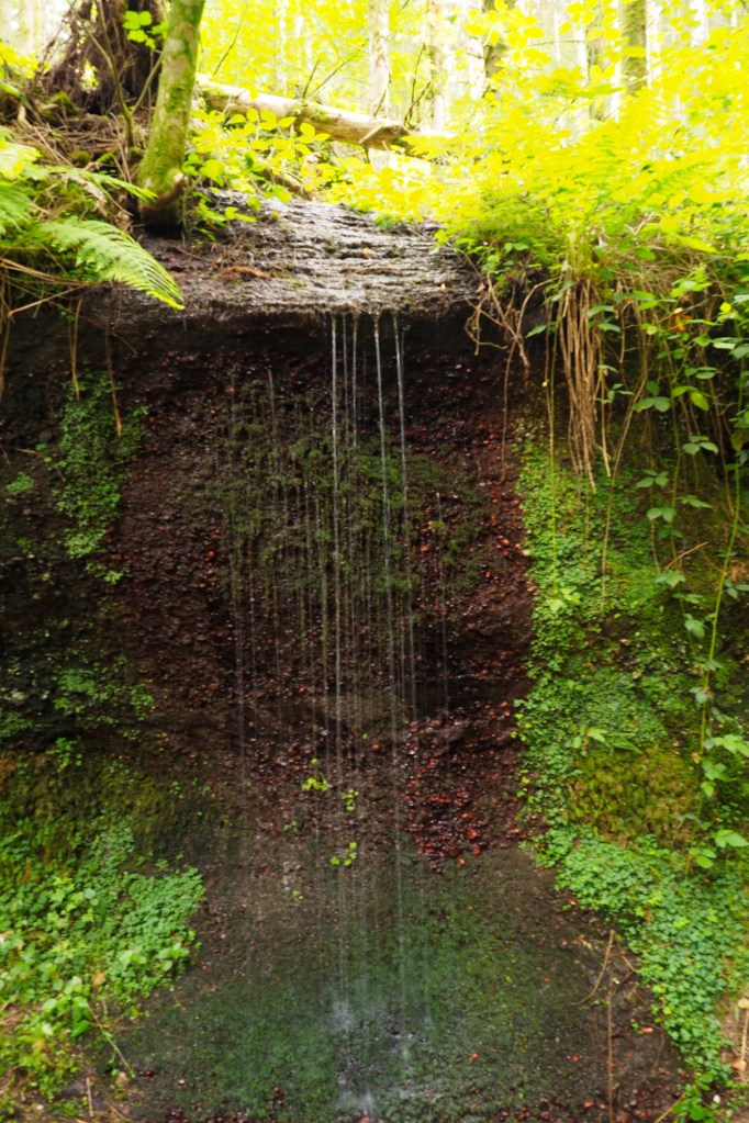 Un petit casse-croûte et nous voilà partis. La randonnée passait dans la forêt, où nous avons pu nous exercer à différencier des hêtres des charmes. Il y avait du plantain majeur tout le long du chemin et j’ai trouvé un beau spécimen de chardon. Nous avons vu un faon de très près et plus tard un pic noir (animal plutôt rare et discret). La vallée est assez étroite, alors le bruit de la route et du train se fait entendre même sur les hauteurs, mais dès qu’on s’éloigne un peu du bord du versant, cela disparaît. Petits ponts à la Indiana Jones, cascades où l’on s’attendrait à voir apparaître des fées d’un moment à l’autre, soleil qui joue entre les branches des sapins, grès rose par petites touches, quelques points de vue panoramique… vraiment charmant.
