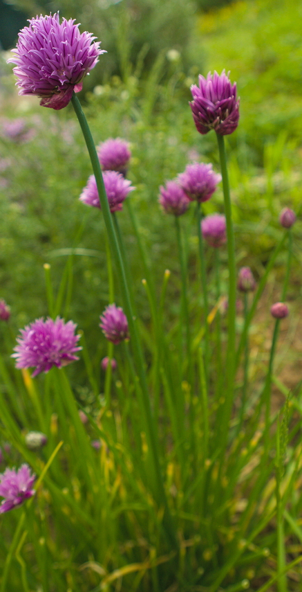 Là, ce qui m’a plu, c’est la légèreté, l’impression d’envol, d’élévation. Et puis aussi le contraste entre le vert et le violet, et entre l’apparente fragilité de la tige et la lourdeur de la fleur. Cela donne une photo tout en hauteur où on voit la frêle tige qui porte la jolie boule. Je trouvais aussi que le rassemblement de fleurs avait quelque chose de joyeux, un peu comme une fête où l’on danse. Du coup, je n’ai pas photographié une seule fleur mais le groupe, en faisant la mise au point sur une d’entre elles tout en gardant les autres en fond. Avouez, vous les voyez se balancer doucement au souffle printanier, non ?