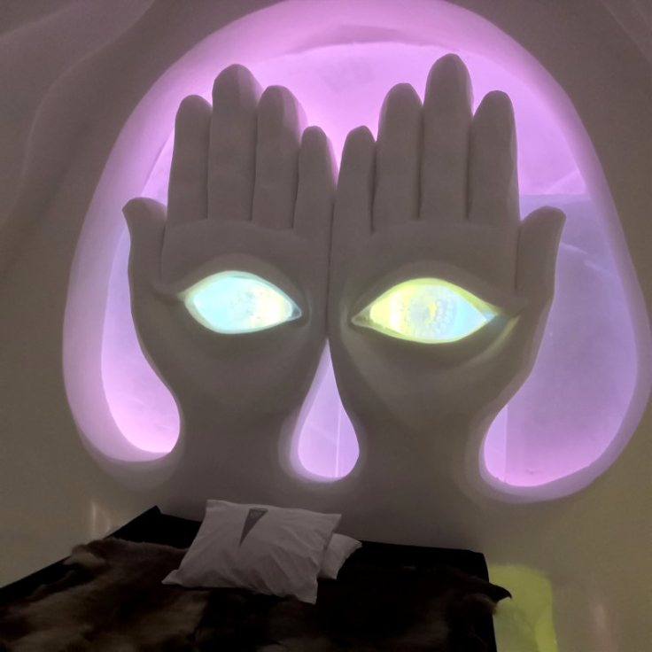 La visite de l’hôtel de glace nouvellement construit a eu lieu ensuite, et c’était magnifique. Plein d’ambiances, des références à la nature avec des animaux ou des végétaux, ou des choses plus abstraites, ou encore des personnages imaginaires issus de la mythologie comme des sirènes. Il y avait même un petit toboggan que nous nous sommes fait un plaisir de descendre.