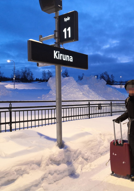 Pour situer globalement, nous avons passé un peu plus d’une semaine dans le nord de la Suède en décembre 2019. Nous sommes partis d’Uppsala (près de Stockholm) en train de nuit jusqu’à Kiruna. Là-haut, nous avions prévu un séjour d’un week-end « classique » : réservation d’une chambre d’hôtel et on verra sur place pour le reste. L’idée était de passer le Cercle polaire et de commencer à découvrir la Laponie « par nous-mêmes ».