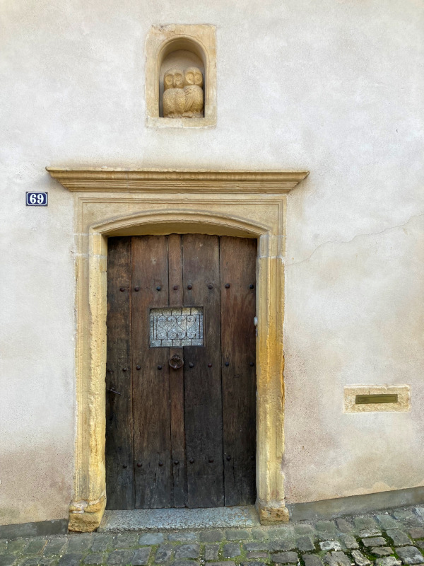 On commence par ces jolies chouettes taillées dans la pierre de Jaumont, pierre jaune dorée locale :