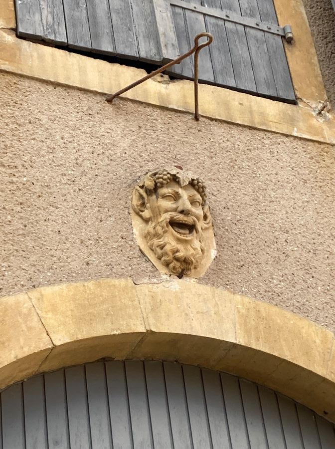 Un peu plus loin, sur la façade d’une maison vigneronne du XVIIIe , voici une tête de Bacchus, dieu du vin :