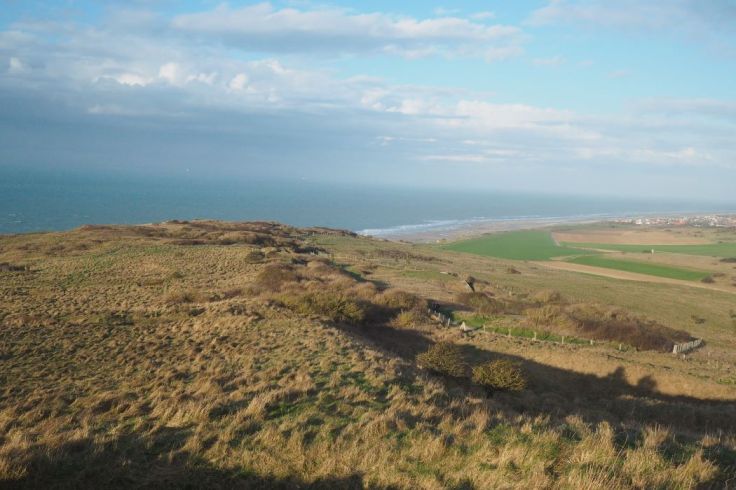 Au Cap Blanc Nez, nous avons tenté l’ascension au soleil couchant mais le vent, le froid et la fatigue de Petit Chardon nous ont découragé. Nous nous sommes contentés du premier panorama et c’était très bien aussi.