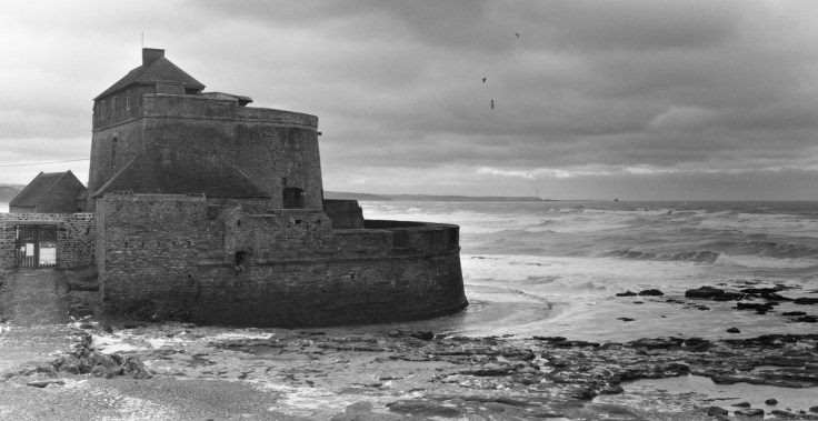 A Ambleteuse, nous avons manqué nous envoler et nous avons admiré le fort Mahon cerné par la mer et assailli par les vagues.