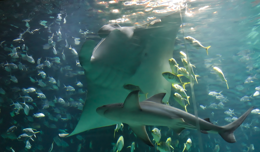 🦈 Voyage en haute mer, avec les requins, la raie manta, la grande baie et un tunnel vitré sous les poissons
