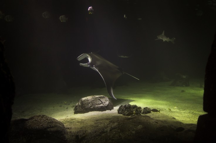 Le clou du spectacle à Nausicaa, c’est l’immense baie vitrée donnant sur le grand bassin. 20 mètres de long, 5 mètres de large : la taille d’un grand écran de cinéma ! Et le ballet des animaux est tout simplement magique, surtout quand la grande raie manta s’en mêle !